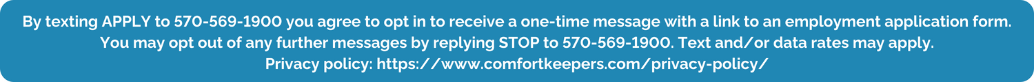 If you meet all these requirements and remain passionate about helping others, please do not hesitate to apply for one of our caregiver jobs at Comfort Keepers of Scranton. If we believe that you are the right fit for the role, one of our team members will be in touch shortly after receiving your application to begin the process.